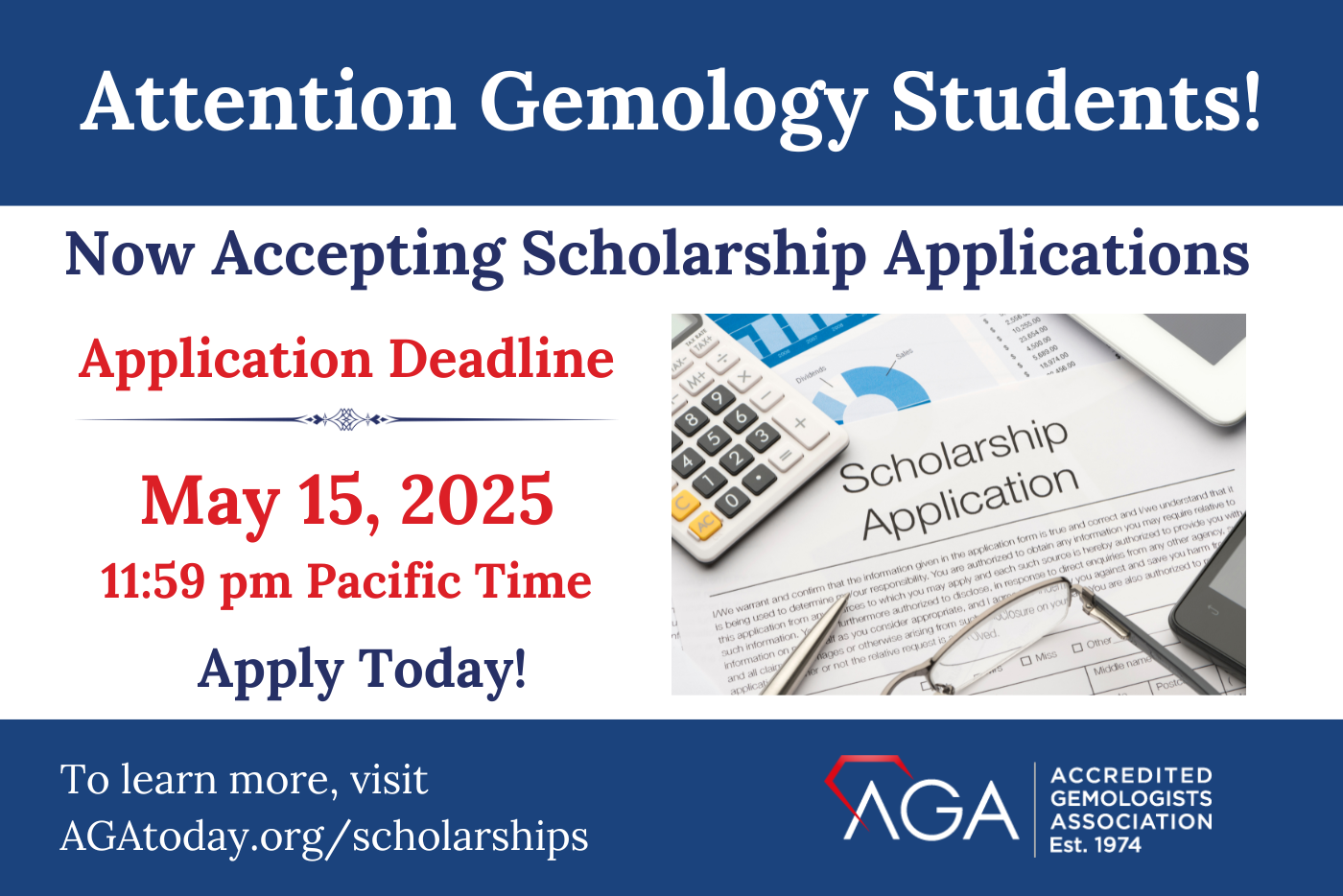 The Accredited Gemologists Association (AGA) is pleased to announce that applications for the 2025 AGA Gemological Education Scholarship Program are now open. This prestigious scholarship supports aspiring gemologists worldwide by awarding funds based on financial need and academic merit. If you are pursuing a career in gemology and require financial assistance for your education, we encourage you to apply. Scholarships of up to $5,000 may be used exclusively for tuition and lab fees, with funds paid directly to the accredited gemological education provider.